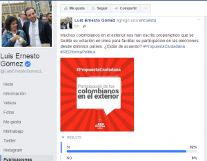 Por su parte, el Viceministro del Interior, Luis Ernesto Gómez Londoño, a través de Facebook, y visible en el siguiente link, invita a los colombianos en el exterior a que digan SI o NO a esta iniciativa: