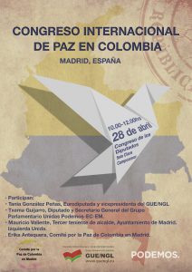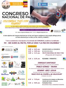 Igualmente nos informa el «Comité por la Paz de Colombia en Madrid» que en el marco de ese Congreso Nacional de Paz, se elaboró un manifiesto que puede ser firmado por organizaciones y/o ciudadanos del mundo, en el siguiente link: https://docs.google.com/forms/d/e/1FAIpQLScCdw8VJClnW5jPiGbm-IMRw2L64NRx-4hHvobJn4z5LkFmZA/viewform#responses, el cual será leído en el Congreso de los Diputados de España el próximo 28 de Abril.