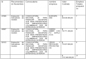 O.B.S. COLEXRET: Quienes integraron el mencionado programa «Retorno productivo», y con el sustento dado por las investigaciones, gestiones y denuncias que en su momento lideró la plataforma «Colombianos en el exterior y retornados – COLEXRET», en asocio con mas de 150 ciudadanos participantes en ese programa, sabemos que el mismo fue un total fracaso para el «SENA» y la Cancillería colombiana, toda vez que invertidos mas de DOS MIL MILLONES ($2.000´000.000) de PESOS en él, ni siquiera el 5% de sus participantes pudieron crear empresa en Colombia, todo por la mala planeación y falsedad en la información suministrada por parte de esas Instituciones, asi el SENA en las anteriores respuestas quiera dar a entender lo contrario, y continúe sosteniendo que ese programa se cumplió de acuerdo a lo previsto. Reiteramos que ese programa fue un total fracaso para sus organizadores, y que el dinero invertido en él prácticamente se perdió TODO.