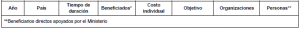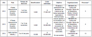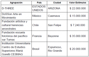 Ya en cuanto al apoyo brindado por el Ministerio de Cultura desde el año 2011, a Organizaciones nacionales o internacionales, al igual que a ciudadanos del común para la realización de eventos culturales fuera de nuestro país, nos dijo esa Cartera que: