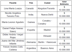 Para el año 2018, pasantías Internacionales: 7 estímulos entregados: