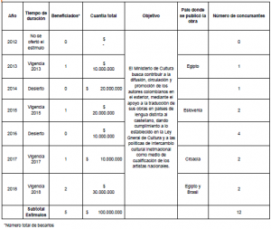 Programa Nacional de Estímulos – Beca para traducir y publicar obras de autores colombianos en el exterior: