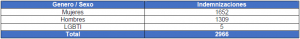 2°. En los siguientes cuadros la estadística de las indemnizaciones entregadas a la fecha, especificando año y género: