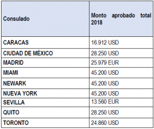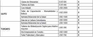 En el siguiente cuadro información acerca de las propuestas presentadas durante el año 2018 por cada uno de los multiplicadores de “Colombia Nos Une” en el exterior, junto con su costo individual: