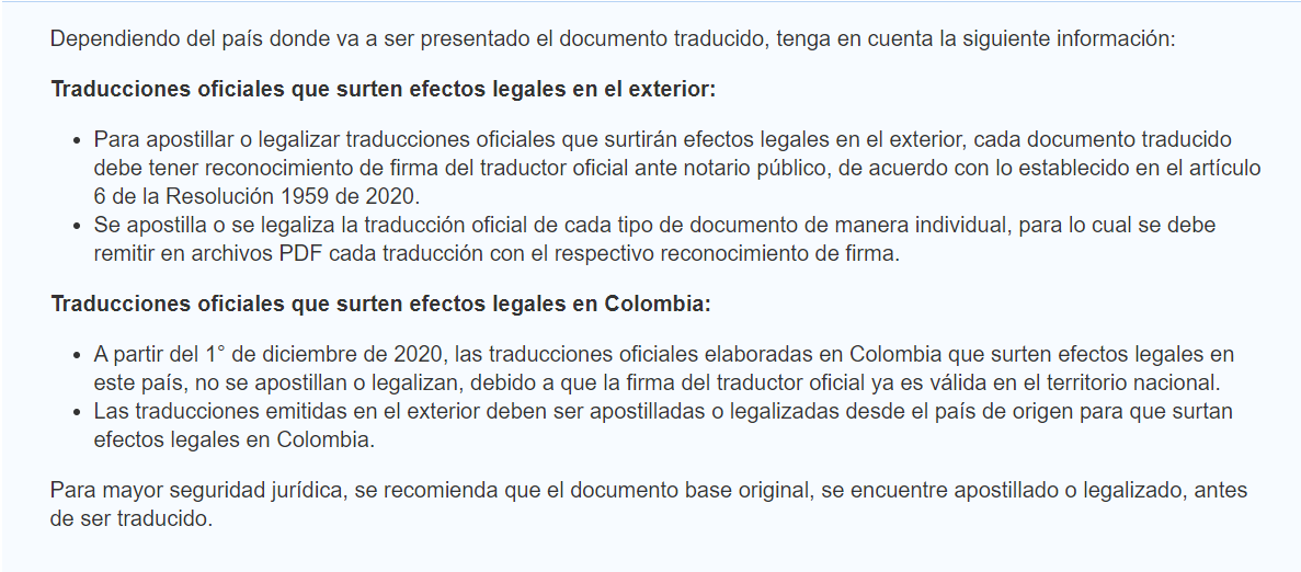 - Con el documento debidamente legalizado por el Ministerio de Relaciones Exteriores, el usuario deberá dirigirse al Consulado del país en el cual el documento surtirá efectos, con el fin de validar la firma del servidor público del Ministerio de Relaciones Exteriores de Colombia.