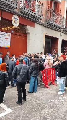 Vean las siguientes imágenes tomadas a la entrada de la actual sede de dicha Oficina consular, e imagínense esa multitud, y más, subiendo y acomodándose en las nuevas instalaciones en un séptimo piso.