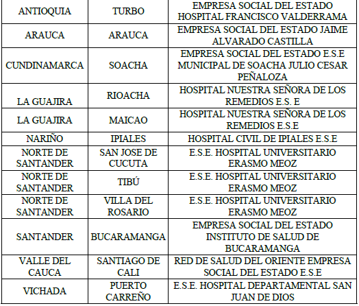 En agosto, se expidió la resolución 1409, por medio de la cual se realiza la asignación presupuestal de $1.998.207.910 COP para la implementación de la primera etapa de la Estrategia. Dichos recursos, de acuerdo con los criterios de priorización para la asignación, serán ejecutados por las siguientes Empresas Sociales del Estado (ESE):