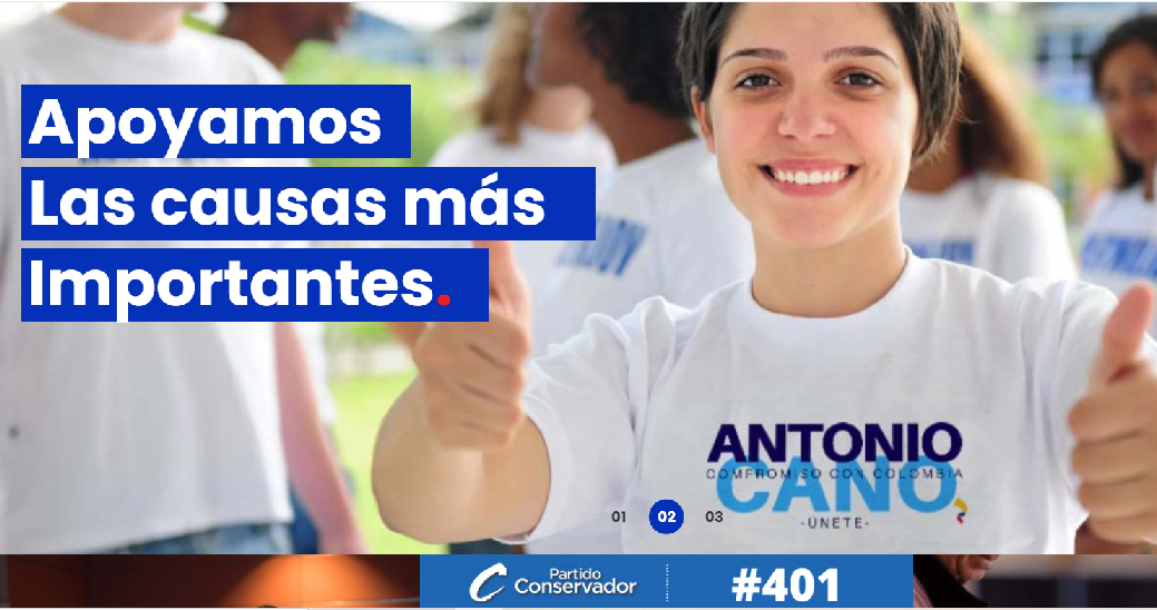 Antonio Cano: Que los colombianos tengan la plena seguridad que votar por Antonio Cano, con el No. 401 por el Partido Conservador, es garantía de verdadero cumplimiento a las propuestas que he plasmado en mi programa electoral. Y por último, mil Gracias Ricardo por la excelente oportunidad para comunicarme con mis electores.