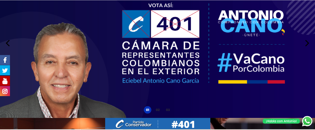 Para conocer más en detalle el perfil y propuestas del Candidato por los colombianos en el exterior Antonio Cano, por el Partido Conservador, con el No. 401 en el tarjetón, los invitamos a visitar su web haciendo clic aquí.