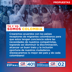 “Tengo cinco propuestas que sin duda abarcan muchísimo de la problemática de los colombianos en el exterior, puedo mencionarte algunas:
