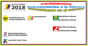 Colombianos en el exterior: si entre el 5 y el 11 del próximo mes de Marzo, no salen a votar masivamente para elegir Representante a la Cámara por los colombianos en el exterior, y lo hacen por candidatos(as) descritos en la siguiente imagen, seguramente, y como mínimo, saldrá elegido uno de los candidatos del Partido político MIRA, pues esta visto que sus seguidores votan por cualquier argumento, menos por el cumplimiento de propuestas que beneficien en realidad a quienes residen fuera de nuestro país, lo cual sería mas de lo mismo en los siguientes CUATRO (4) AÑOS.