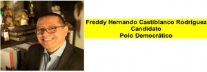 En lo que respecta al Polo Democrático, tenemos que sus candidatos son Freddy Hernando Castiblanco Rodriguez y Jesús Rafael Gamarra Luna. En cuanto a éste último no sabemos dónde pueda localizarse, mientras que de Freddy Castiblanco nos hizo llegar parte de su biografía, donde supimos que nació en Bogotá, cuenta con 46 años de vida, es Médico cirujano de la Universidad Nacional de Colombia, vive en Queens – EE.UU. desde el mes de Marzo del 2000. Microempresario, propietario del Café-bar Terraza7, referencia para el Jazz Latino en Nueva York y la participación política de los inmigrantes.